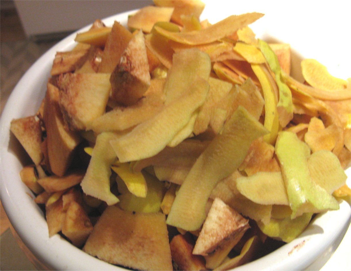 I peeled and trimmed the quince until I had 4 pounds of peels and trimmings, and 3 pounds of quince chunks. I put them in separate pots and started cooking.